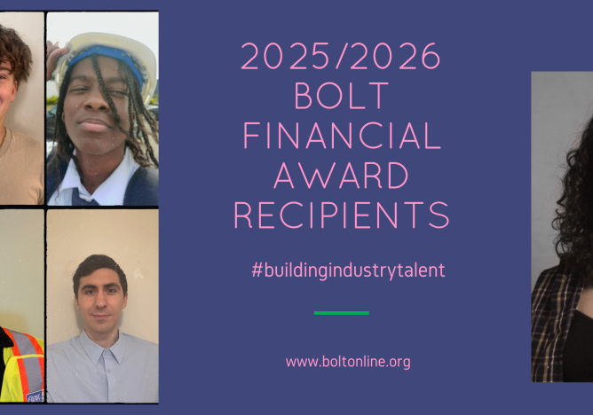 “It has been about a year since receiving the BOLT Financial Award and my life and career have changed for the better. BOLT not only provided me with the financial resources to successfully focus and complete the school year, but also provided me with the opportunity to start my career in the construction industry.